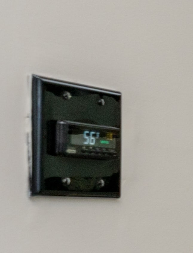 The two registers you see in the wine cellar’s ceiling are part of its robust wine cellar cooling system.