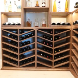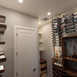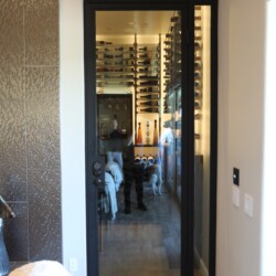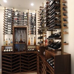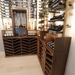 Step inside one of our signature custom modern wine rooms, where clean lines, warm walnut tones, and sleek metal detailing come together in a space that feels both refined and inviting. Designed to maximize storage without overwhelming the footprint, this room proves that modern wine storage can be architectural, functional, and effortlessly stylish all at once. It’s a perfect example of how custom modern wine rooms can transform an everyday corner of the home into a statement-worthy destination.